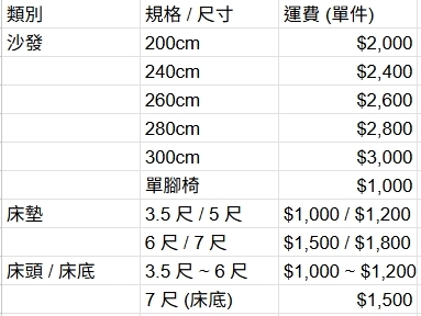 • 舊家具搬運:購買同商品、同尺寸者,免費搬至一樓指定清運處。