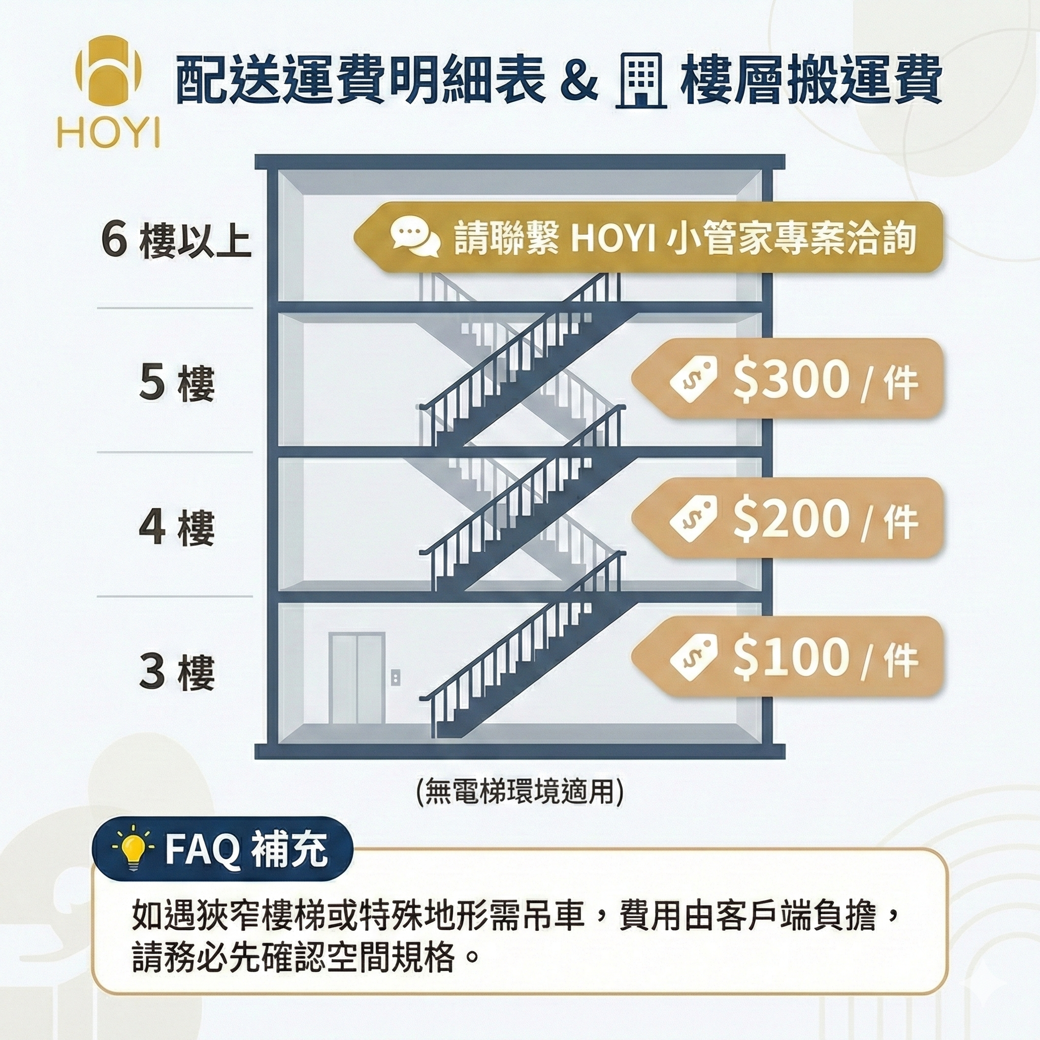 🏢 樓層搬運費(無電梯環境)